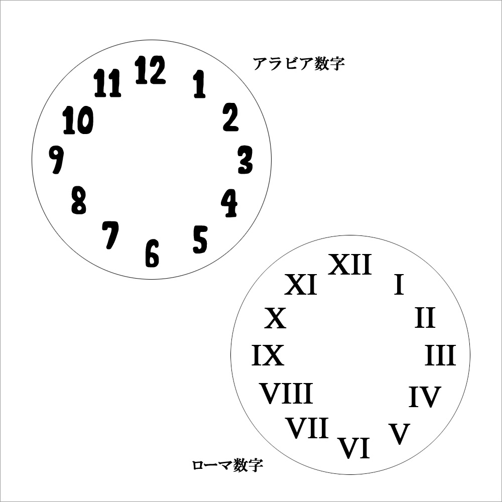 文字盤の数字の種類は、アラビア数字(1,2,3,…)とローマ数字(I,II,III,…)から選んでいただけます。アラビア数字は、やわらかくほっとさせてくれる書体、ローマ数字は、スタイリッシュでかっこよさを際立たせる書体となっております。